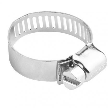 Стальной червячный хомут состоит из штампованной ленты и винта с червячной резьбой. По всей длине ленты имеются просечки, расположенные на одинаковом расстоянии друг от друга. При вращении винта лента сжимается, благодаря чему создается надежное и герметичное соединение шлангов, различных труб, и т.д. Червячный винт снабжен шестигранной головкой под ключ 8 мм и шлицем SL, что позволяет использовать при монтаже гаечный ключ или шлицевую отвертку. Хомут предназначен для многократного использования.